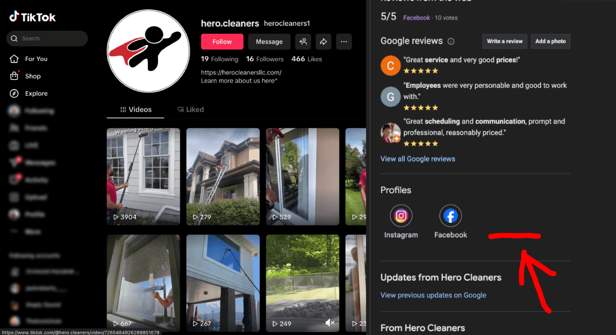 We already discussed the importance of connecting your social media accounts to your Google Business Profile, and we found that this business has an active TikTok account, but it is not connected.